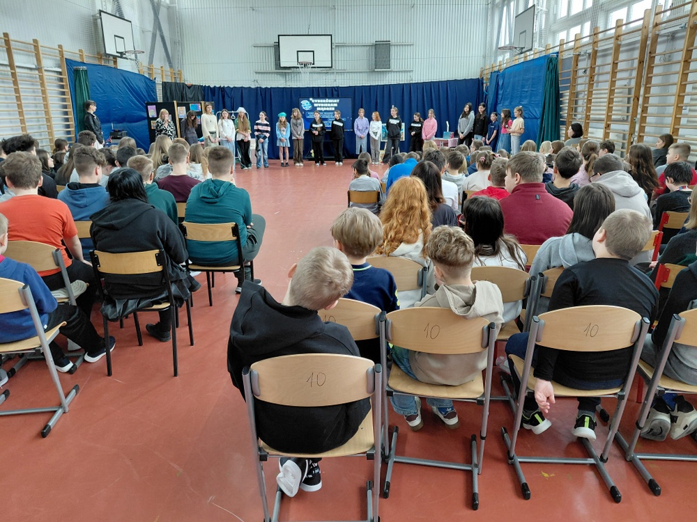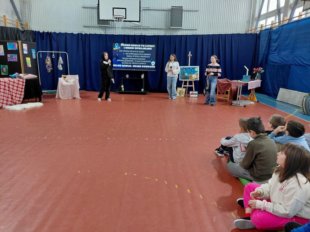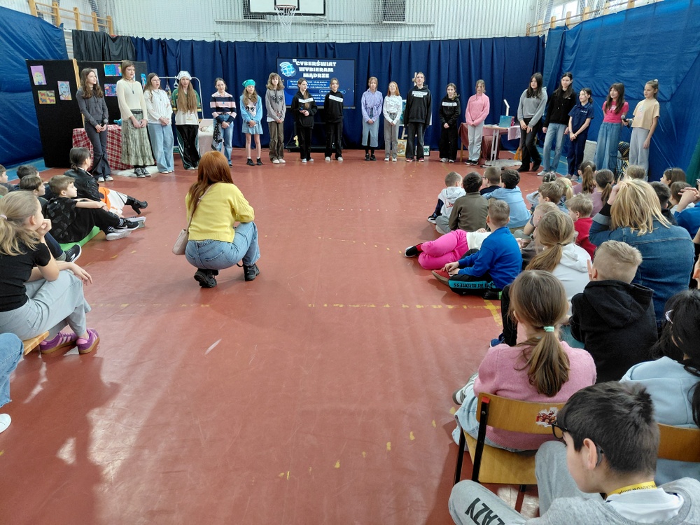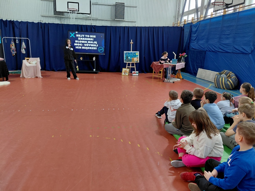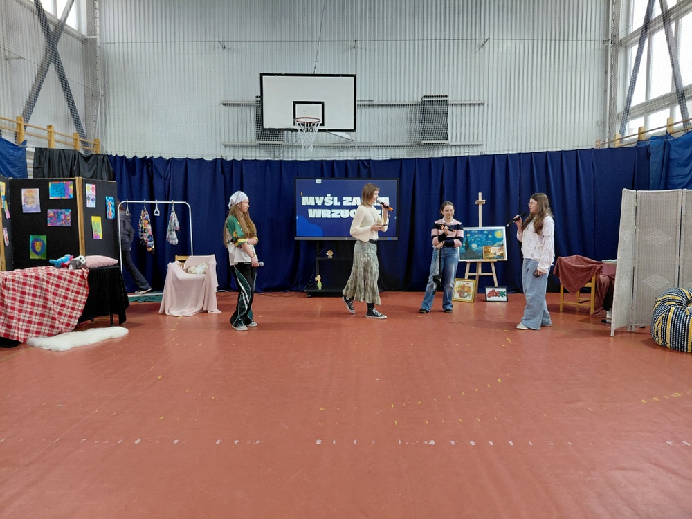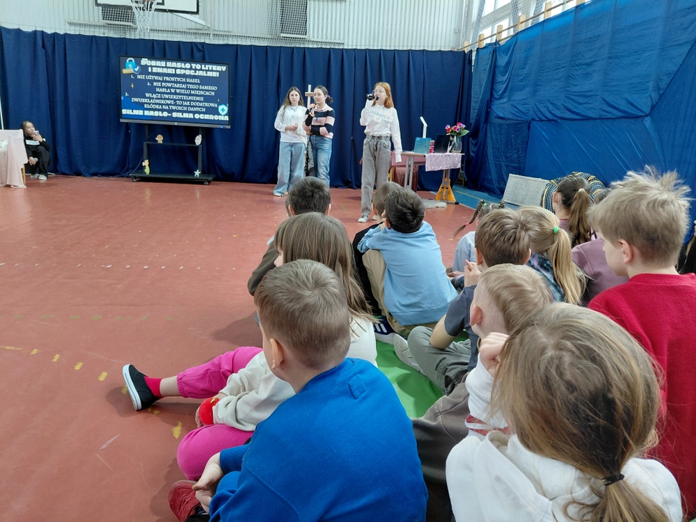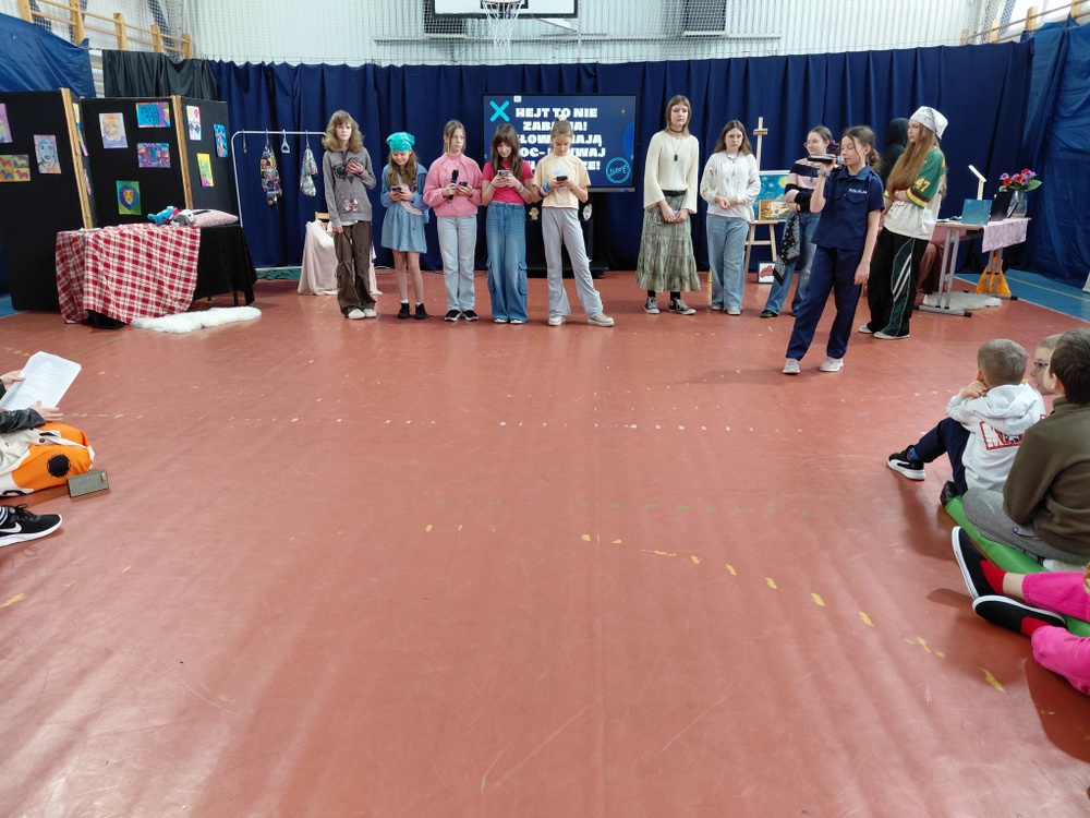 "Cyberświat - wybieram mądrze" taki tytuł nosiła sztuka wystawiona 29 stycznia 2026r. przez szkolne koło teatralne. Autorski scenariusz przedstawiał historie czterech przyjaciółek, które muszą się zmierzyć z trudnościami w wirtualnym świecie. Zwrócono uwagę na niepotrzebne upublicznianie danych wrażliwych, kontaktowanie się z nieznajomymi, zabezpieczanie swoich kont oraz hejtu i obraźliwego komentowania. Poruszanie się w internecie i na portalach społecznościowych to niełatwe zadanie. Daje wiele korzyści, ale niesie też niebezpieczeństwa, których konsekwencje mogą przełożyć się na realne życie. Spektakl ostrzega i pobudza do refleksji.