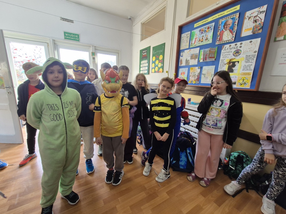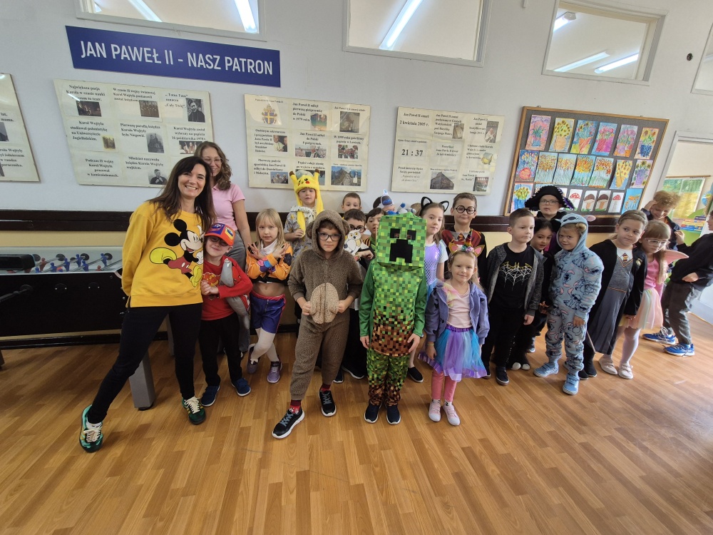 5 listopada w naszej szkole obchodziliśmy Dzień Postaci z Bajek – jedno z najbardziej kolorowych i radosnych wydarzeń w roku szkolnym. Tego dnia uczniowie klas I–III wcielili się w swoich ulubionych bohaterów bajkowych, prezentując pomysłowe i barwne stroje. Szkolne korytarze zapełniły się postaciami z klasycznych i współczesnych bajek – nie zabrakło księżniczek, superbohaterów, zwierzątek i czarodziejów.