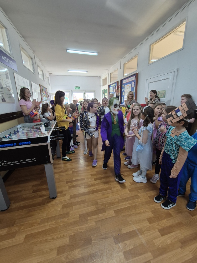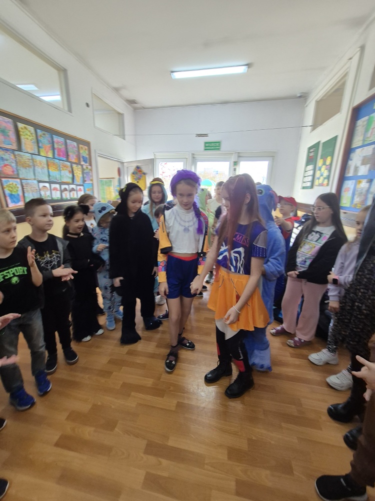 Podczas długiej przerwy przedstawiciele Samorządu Uczniowskiego ze starszych klas przygotowali dla najmłodszych uczniów liczne atrakcje – tańce, gry i zabawy integracyjne. Wspólna zabawa dostarczyła wszystkim wiele radości i uśmiechu.