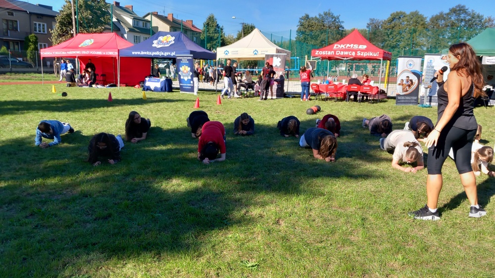 Uczestnicy spotkania mogli nie tylko sprawdzić swoją kondycję fizyczną przez udział w licznych konkurencjach sportowych takich jak: sztafetowy bieg z przeszkodami, turniej plażowej piłki siatkowej, zwis na drążku, podnoszenie ciężarów, ćwiczenie równoważne, rzut poduszką, fitness na trampolinach, zumba, ale również zadbać o swoje ciało. W specjalnie przygotowanych namiotach można było wykonać podstawowe badania, takie jak pomiar ciśnienia krwi, czy określanie składu ciała, skorzystać z masażu kręgosłupa, wykonać zabiegi pielęgnacyjne dłoni.