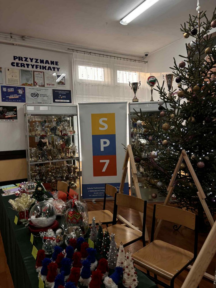 Kiermasz Świąteczny stanowi ważny element tradycji naszej szkoły. W jego przygotowanie zaangażowali się uczniowie klas IV–VII, którzy podczas zajęć plastyki wykonywali tradycyjne karty świąteczne, stroiki oraz bombki cekinowe. W organizację przedsięwzięcia włączyli się również rodzice uczniów. Dzięki ich zaangażowaniu powstały wyjątkowe ozdoby świąteczne: aniołki, skrzaty, drewniane choinki, bombki, stroiki oraz słodkie upominki, które cieszyły się dużym zainteresowaniem.