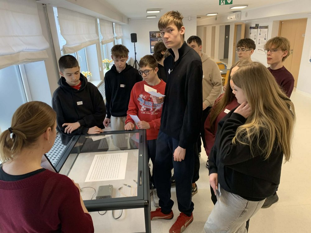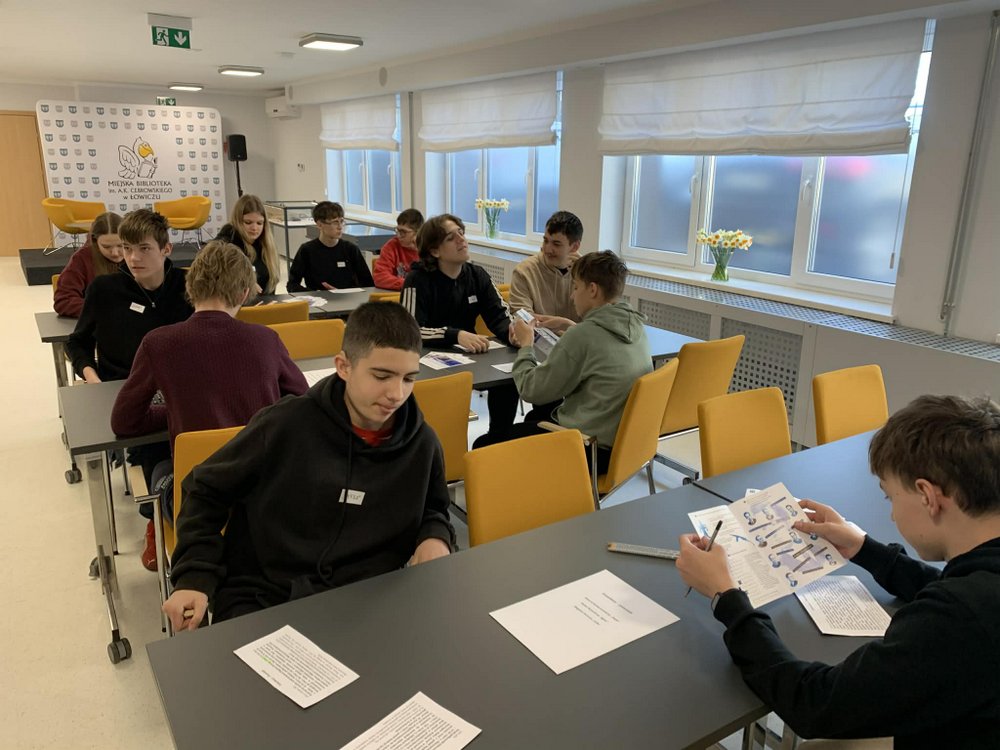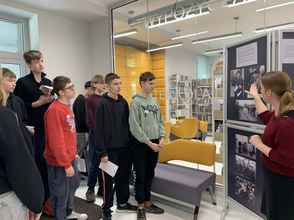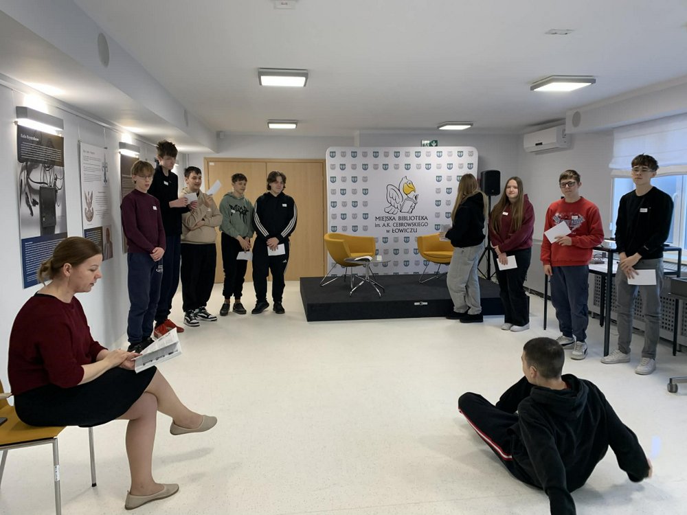 W ramach lekcji historii, klasa VIIIa wybrała się do Miejskiej Biblioteki im. A.K. Cebrowskiego w Łowiczu na lekcję opartą na wystawie „Łowicki Mały Arsenał”, upamiętniającą akcję „Uwolnić Cyfrę” z 1945 r. Było to aktywne spotkanie, które przybliżyło młodzieży historię harcerzy łowickich, a także ich losy po wojnie.