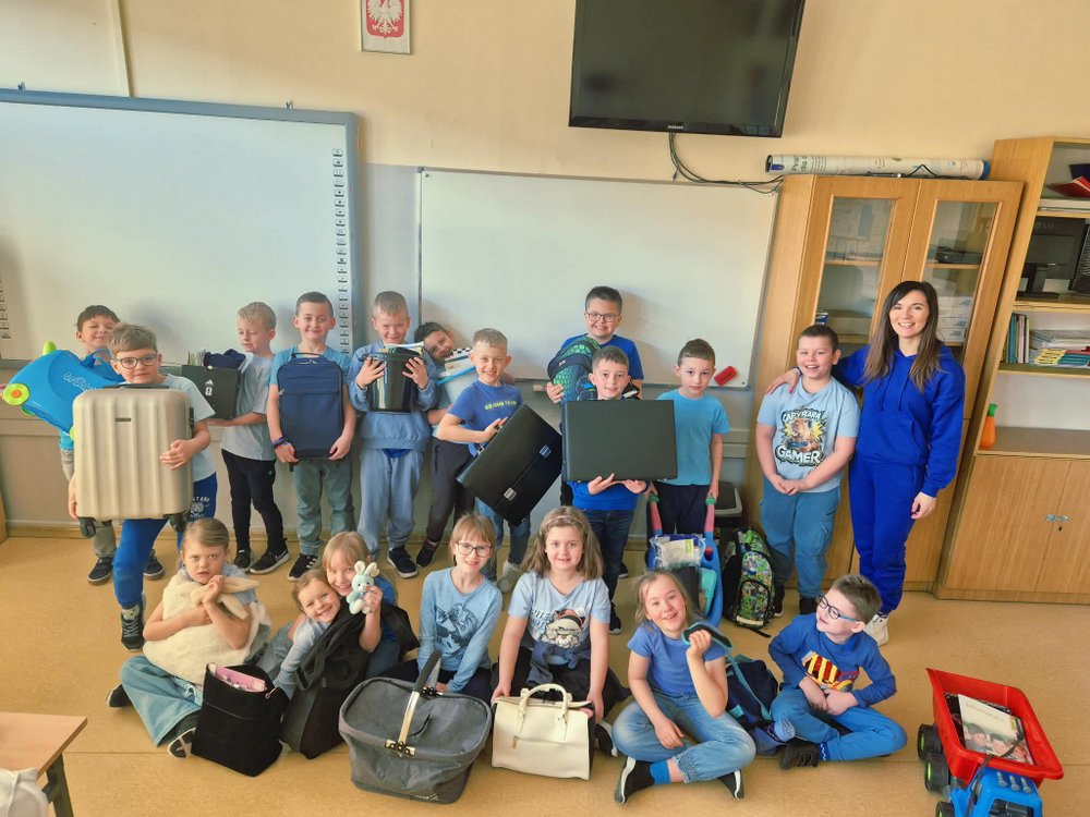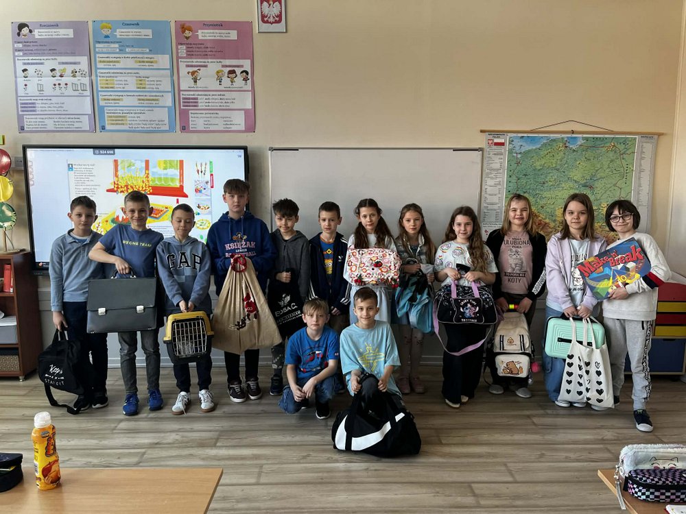 Symbolem solidarności z osobami w spektrum autyzmu jest kolor niebieski – dlatego tego dnia uczniowie oraz nauczyciele przyszli ubrani w niebieskie koszulki. Dodatkową atrakcją był „Dzień bez plecaka”, który spotkał się z ogromnym entuzjazmem wśród uczniów. Zamiast tradycyjnych plecaków pojawiły się niezwykle pomysłowe rozwiązania – walizki, koszyki, półki, suszarka, a nawet nietypowe przedmioty codziennego użytku takie jak mikrofalówka, chlebak, rower czy kosiarka, które zostały kreatywnie zaadaptowane do przenoszenia przyborów szkolnych.