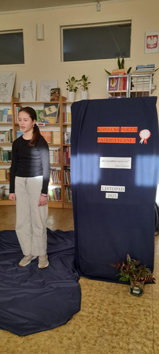 13 listopada 2025 r. w bibliotece szkolnej odbyła się II edycja konkursu poezji patriotycznej „Bez tej miłości można żyć”.