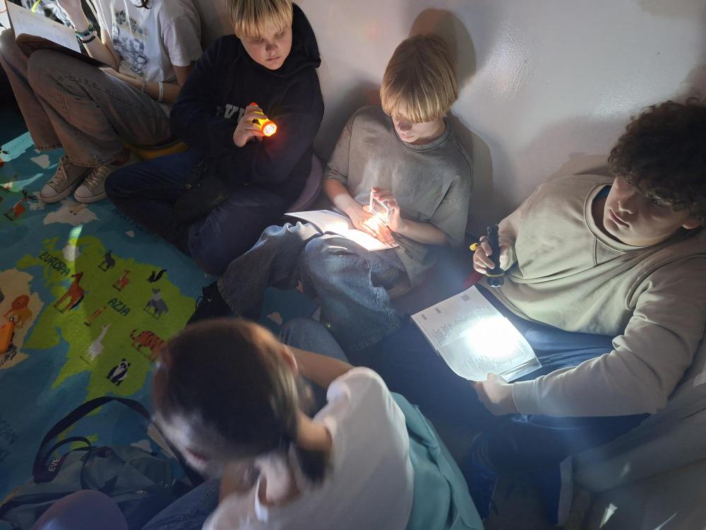 Można i tak.... Literatura jest dobra na każdą okazję i każdą scenerię. Uczniowie klasy siódmej przekonali się o tym podczas omawiania "Dziadów" A. Mickiewicza. Co prawda w cmentarną ciemną kaplicę wcieliła się szkolna siłownia, ale klimat tajemniczości i niezwykłych spotkań został zachowany. Młodzież, zanurzając się w ciemność, rozświetloną tylko świecami i latarkami, poznała losy bohaterów dramatu, co było doskonałym wstępem do dalszego omawiania lektury.