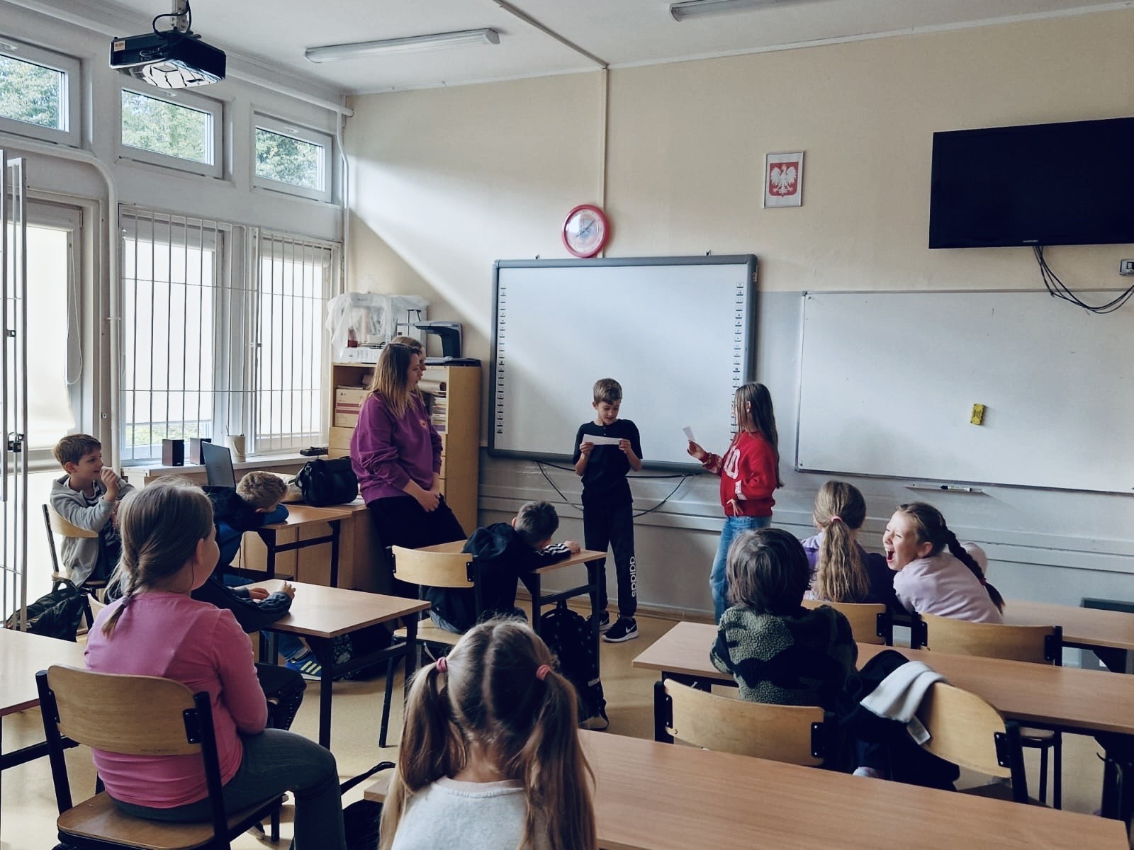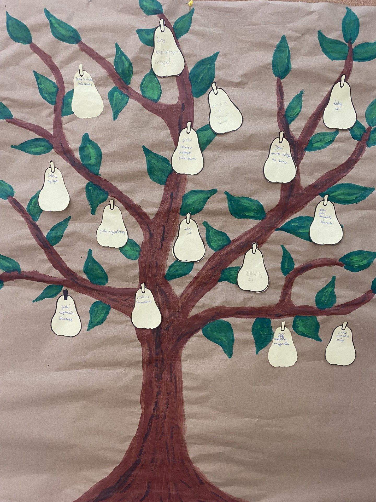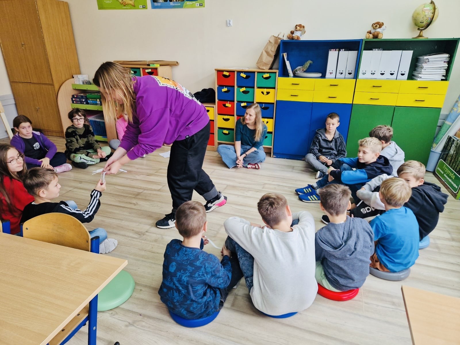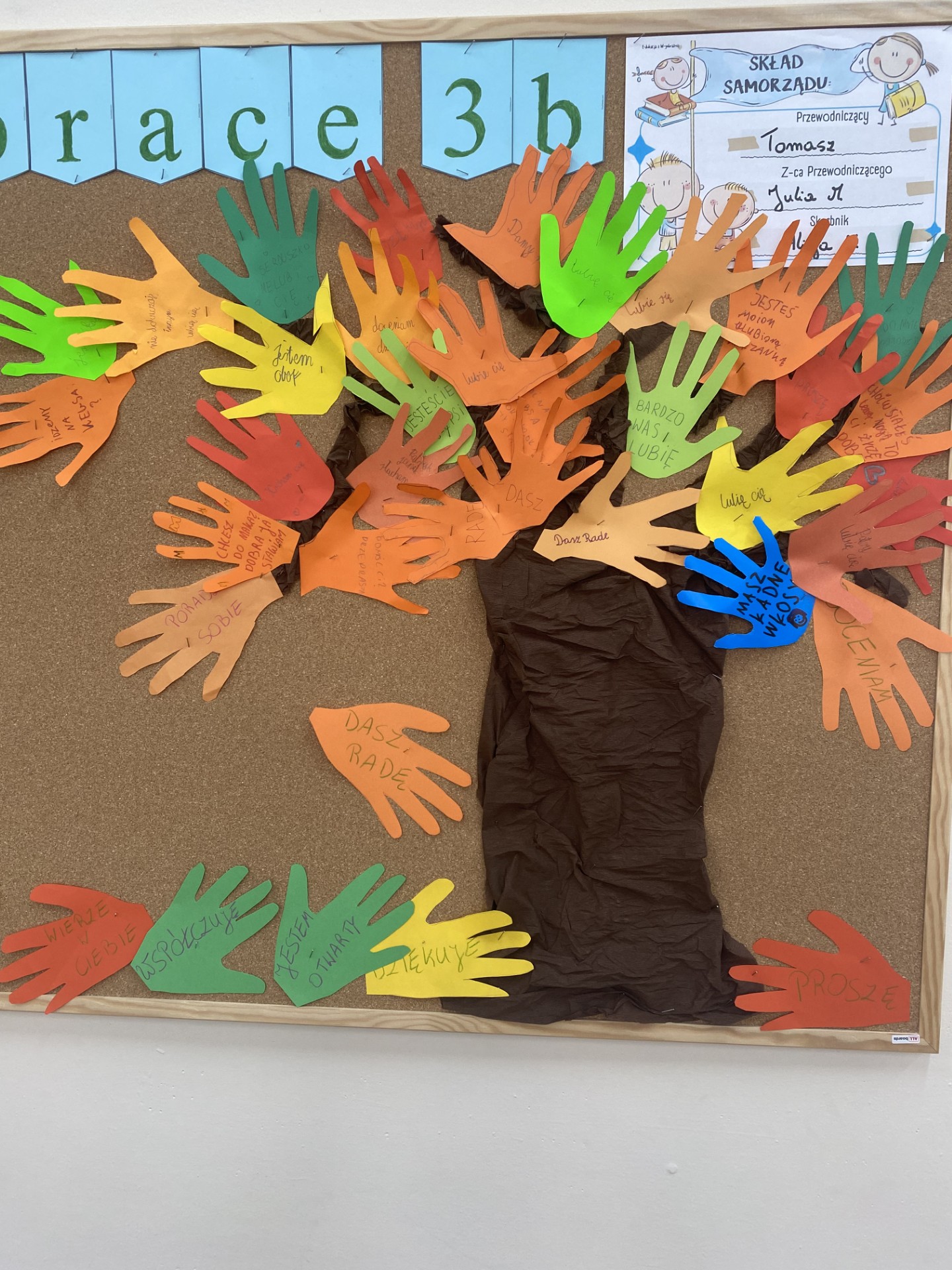 W klasach 1–3 odbyły się warsztaty pt. „Nasza paczka bez przemocy”. Dzieci rozmawiały o tym, co zrobić, gdy zauważą niewłaściwe zachowania u innych, wysłuchały opowiadania o Tymku i wspólnie analizowały jego sytuację. Zwieńczeniem spotkań były twórcze prace grupowe – „Drzewo dobrych słów” oraz „Ręce, które pomagają”, które przypominają, jak wielką moc mają życzliwe słowa i drobne gesty.
