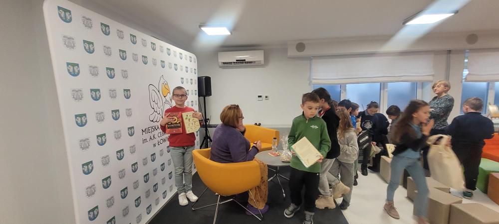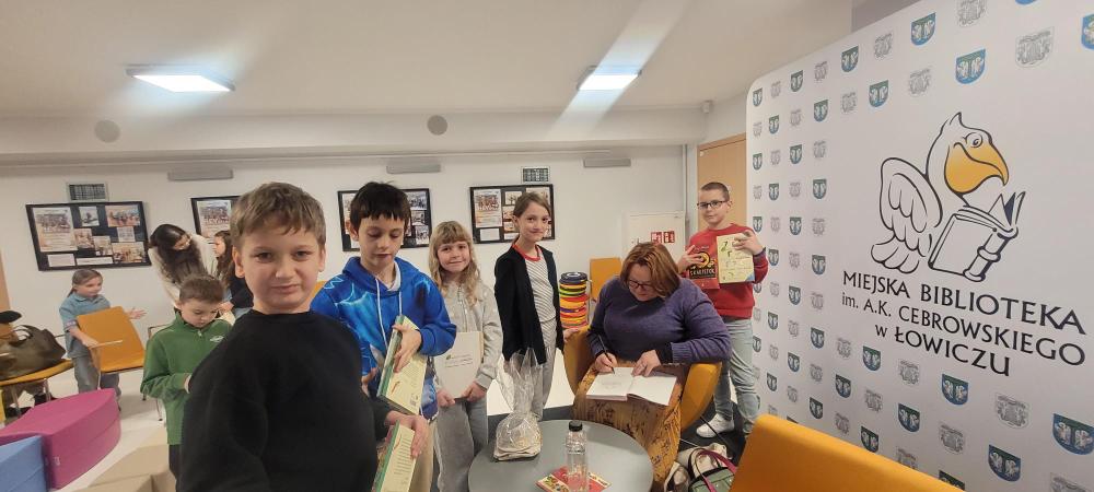 Dnia 26 listopada uczniowie klasy 2a uczestniczyli w spotkaniu autorskim z panią Justyną Bednarek – pisarką niezwykle popularnej serii książek o przygodach dziesięciu skarpetek. Autorka opowiedziała o początkach swojej drogi twórczej, o tym, skąd czerpie pomysły na przygody swoich bohaterów oraz jak wygląda praca nad książką. Wydarzenie odbyło się w Bibliotece Miejskiej im. A. K. Cebrowskiego w Łowiczu i przebiegało w bardzo życzliwej oraz twórczej atmosferze.