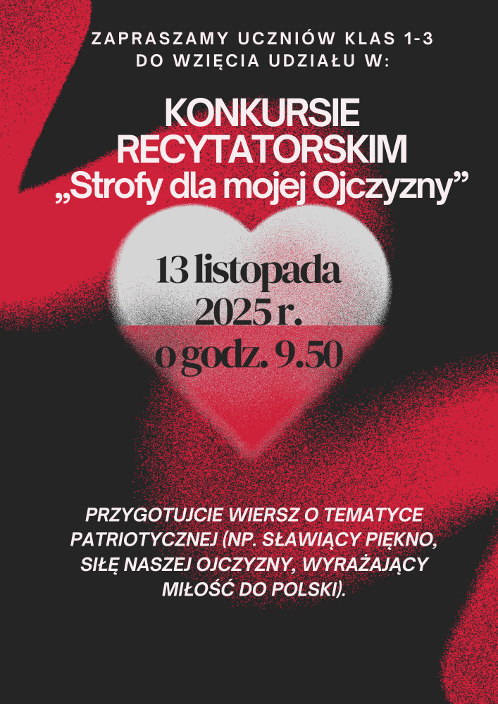 Konkurs odbędzie się 13 listopada 2025r. w sali gimnastycznej o godzinie 9.50.