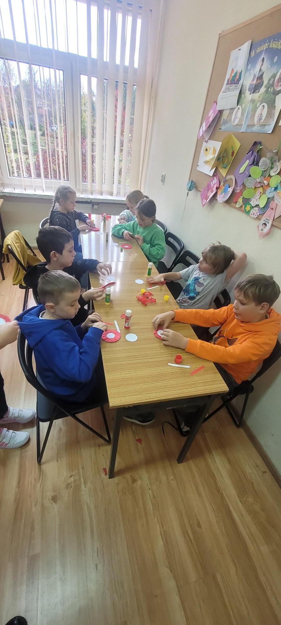 Na koniec spotkania odbyła się część plastyczno - techniczna, na której drugoklasiści mogli wykazać się, tworząc kokardy narodowe.