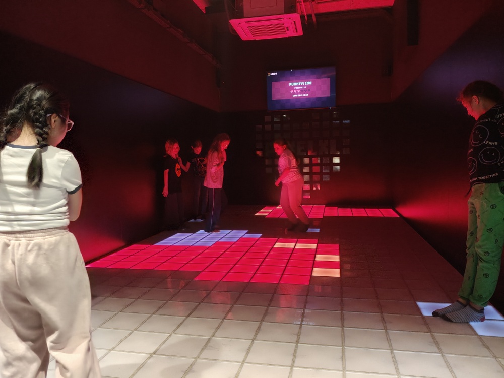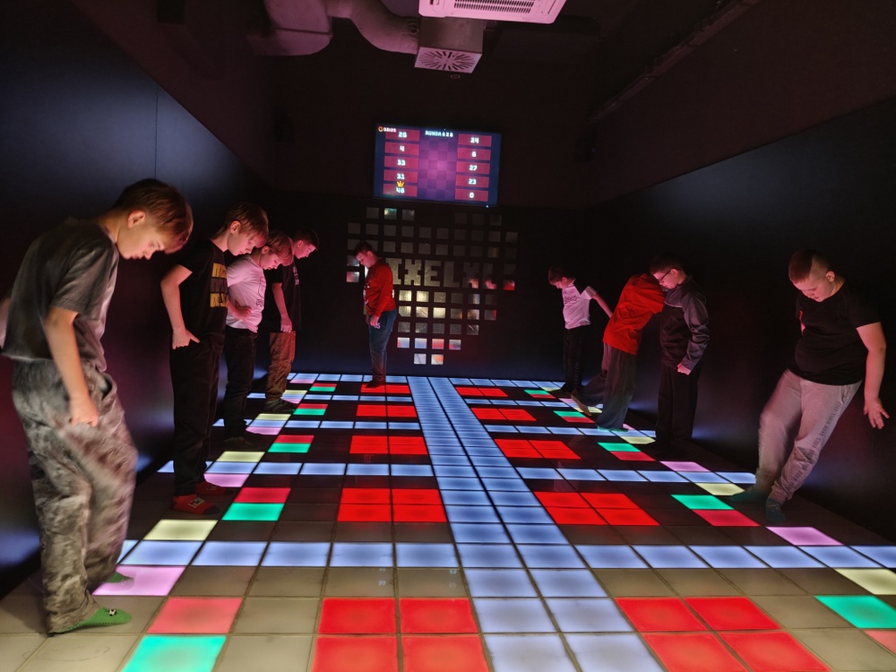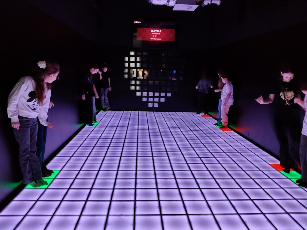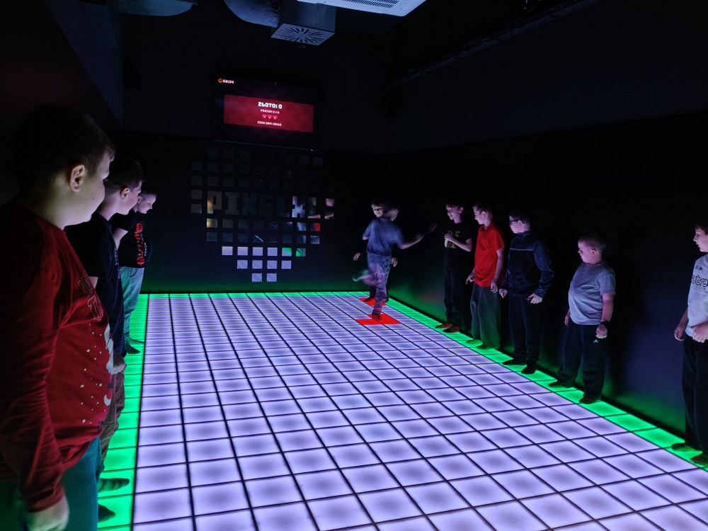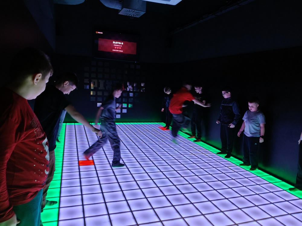 Pierwszym punktem programu była wizyta w Pixel XL, gdzie dzieci aktywnie spędziły czas na matach interaktywnych. Dynamiczne gry ruchowe, zadania wymagające współpracy oraz dawka zdrowej rywalizacji sprawiły, że uczniowie z ogromnym zaangażowaniem uczestniczyli we wspólnej zabawie.