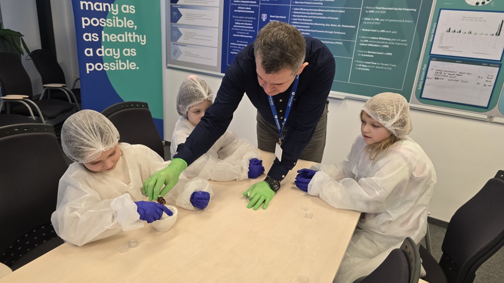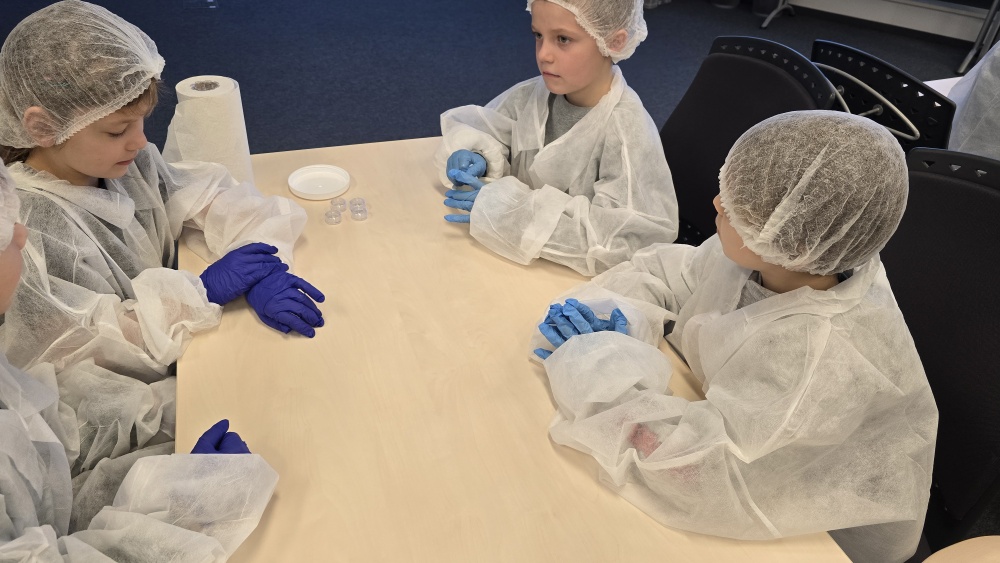 26 stycznia uczniowie klasy 2b odwiedzili Zakłady Farmaceutyczne ORIFARM w Łyszkowicach. Na warsztatach „Leki to nie cukierki” poznali rodzaje leków oraz zasady bezpiecznego ich przyjmowania. Dowiedzieli się również jak je stosować, przechowywać i gdzie wyrzucać. Potem przez chwilę mogli poczuć się jak prawdziwi farmaceuci. Ubrani w odpowiedni strój, utarli w makutrze maść ochronną do ust, którą mogli zabrać do domu. Na koniec były zabawy i upominki. Uczestnicy otrzymali książeczkę, ołówki z niespodzianką i batoniki. To był wesoły i atrakcyjny dzień.