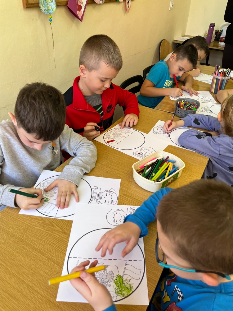 Uczniowie poznali historię odzyskania przez Polskę niepodległości, postać Józefa Piłsudskiego oraz polskie symbole narodowe: godło, flagę i hymn. Wykonali też przepiękne prace plastyczne nawiązujące do barw i symboli narodowych.