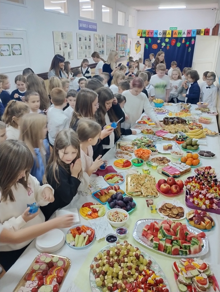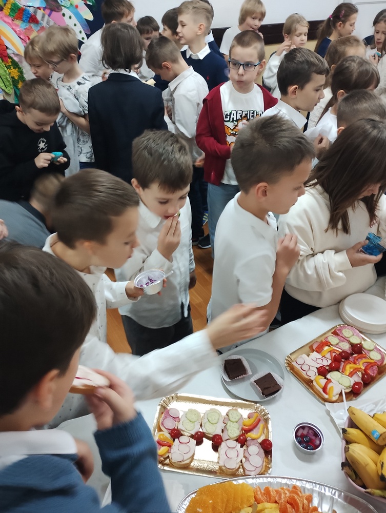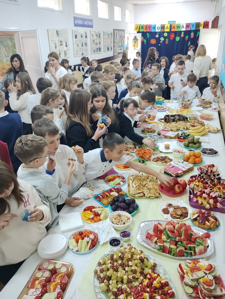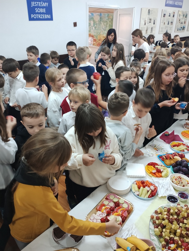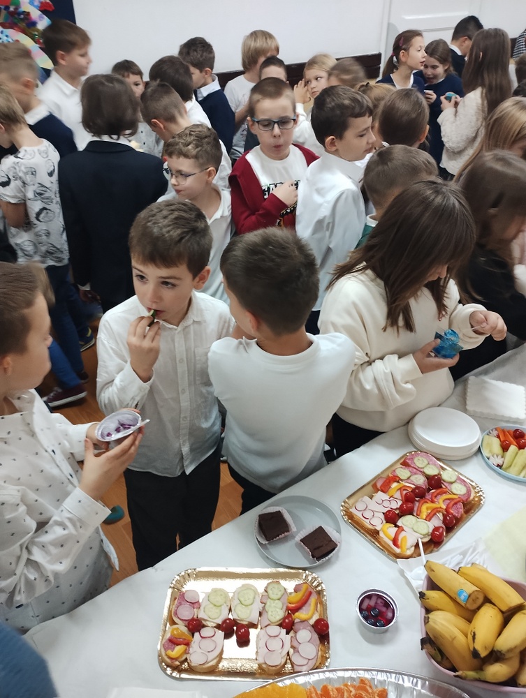 W listopadzie rodzice uczniów klas 2a, 3b i 3c zorganizowali wraz z nauczycielami „zdrową przerwę”. Uczniowie mieli możliwość zjedzenia pełnych smaku przekąsek, składających się z warzyw, owoców, produktów wieloziarnistych oraz naturalnych deserów. Wydarzenie to spotkało się z wyjątkowym zainteresowaniem. Okazało się, że dzieci chętnie i ze smakiem spożywają zdrowe potrawy. Zdrowa przerwa została przyjęta z wyjątkowym entuzjazmem, dlatego zostanie ona powtórzona w następnym półroczu.